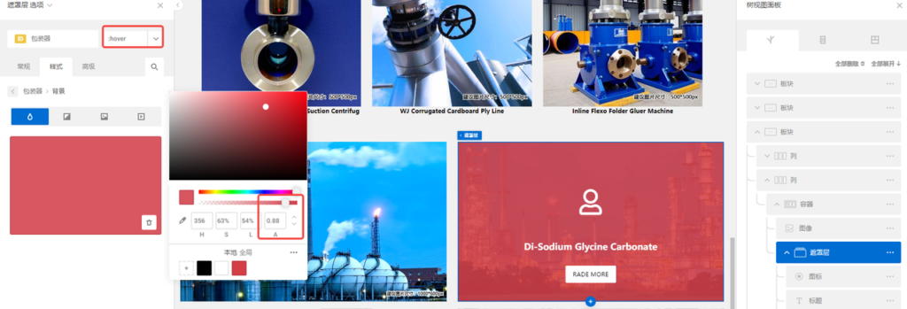 设置遮罩层 hover状态下的背景色和透明度。