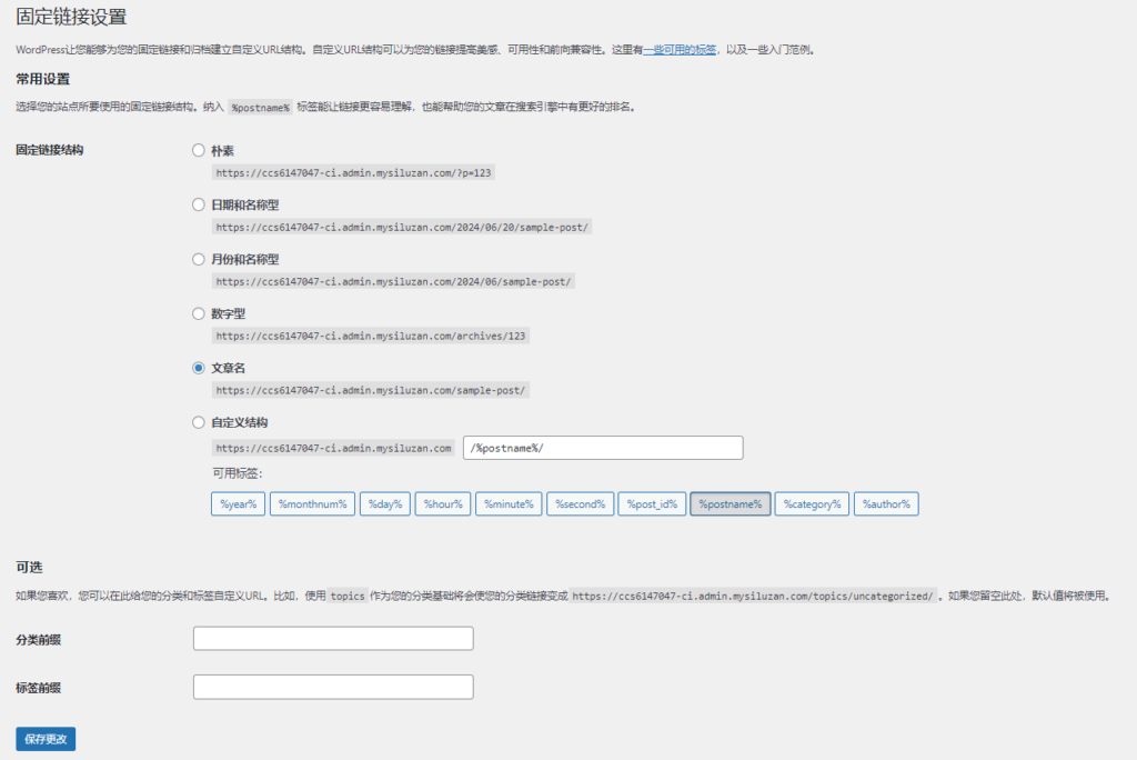 固定链接结构主要是指网站页面链接在浏览器显示的url的结构,可根据url需要进行设置。