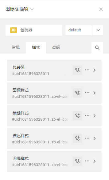 3、左侧操作区常规操作可设置图标框的链接、链接打开方式、对齐、样式、形状、图标样式等。