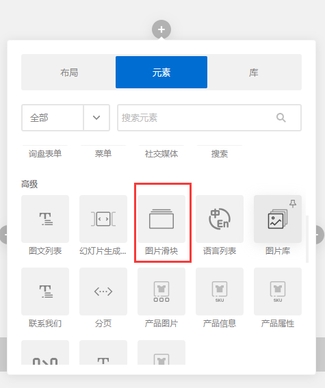 进入页面编辑,添加一个图片滑块组件。