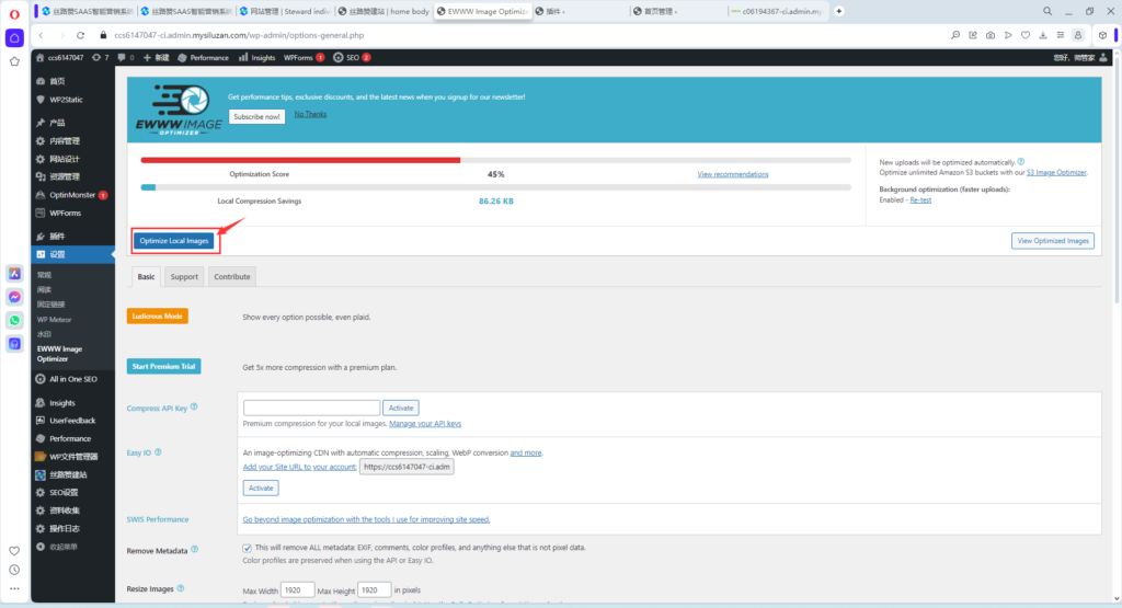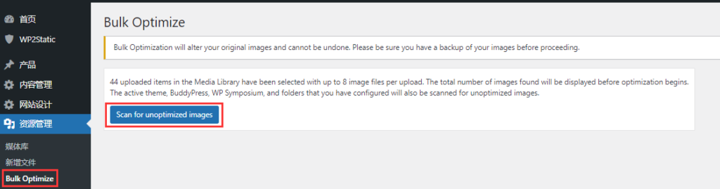 用于对整体的图片进行批量优化。点击按钮进行优化。