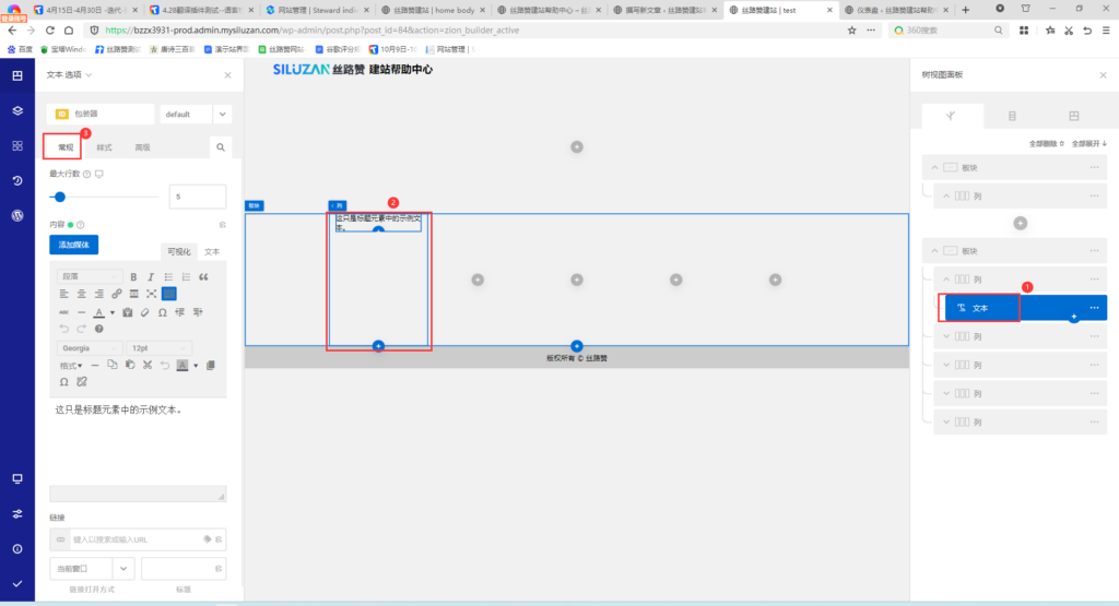 3、左侧操作区常规操作可设置文本内容、文本链接