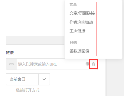 文本链接可填写链接或选择动态数据。打开窗口可以选择当前窗口或新窗口