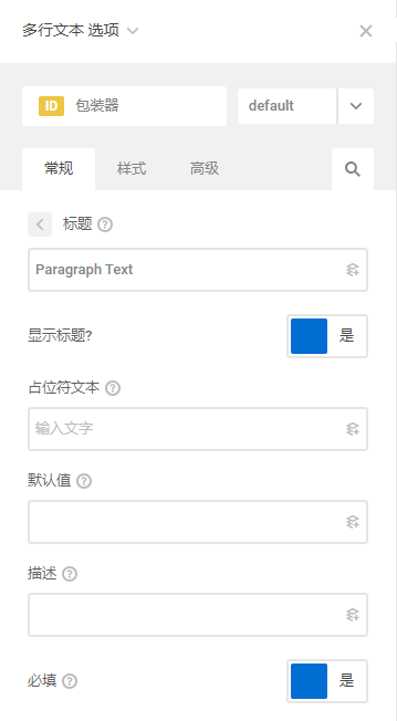 每个表单项后面有三个小图标,第一个为复制,第二个为删除,第三个为编辑。点击编辑,对表单项进行编辑:标题文字、是否显示标题、占位符文本、默认值、描述、是否必填。
