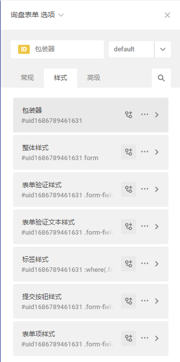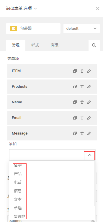 4、设置询盘表单样式:包装器、整体样式、表单验证样式、表单验证文本样式、标签样式、按钮提交样式、表单项样式