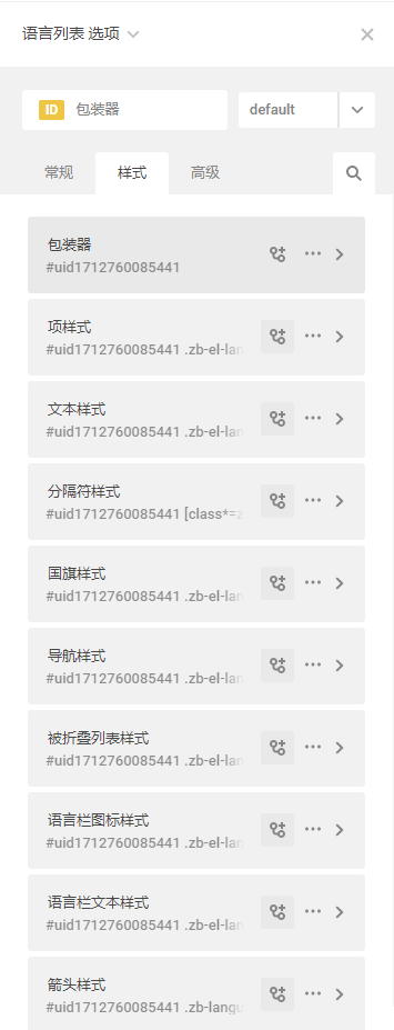 5、设置语言列表样式:包装器、项样式、文本样式、分隔符样式、国旗样式、导航样式、被折叠列表样式、语言栏图标样式、语言栏文本样式、箭头样式。。